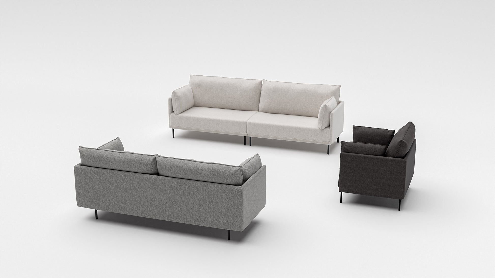 一体型ではなく、分離可能なクッションでアームレストや背もたれを構成している「Grande Sofa」。背もたれが高く、快適な座り心地を提供します。