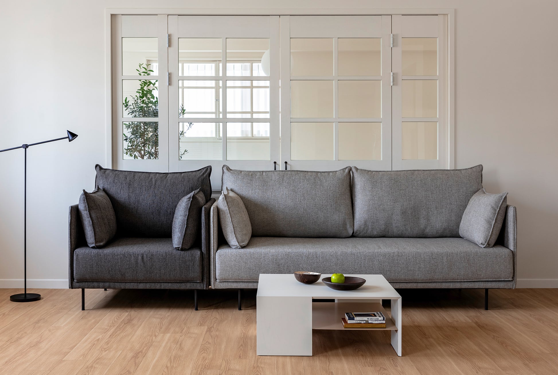 Grande Sofaのカバーは取り外しが可能で、それぞれの部分に合った内装材を使用しました。また、取り外し可能なクッションにはマイクロファイバーソームが内蔵されています。