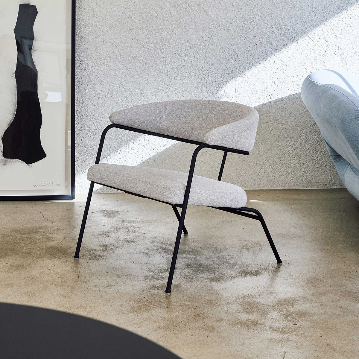 シンプルでモダンなフレームに、やわらかな曲線の背もたれを合わせた洗練されたデザイン。