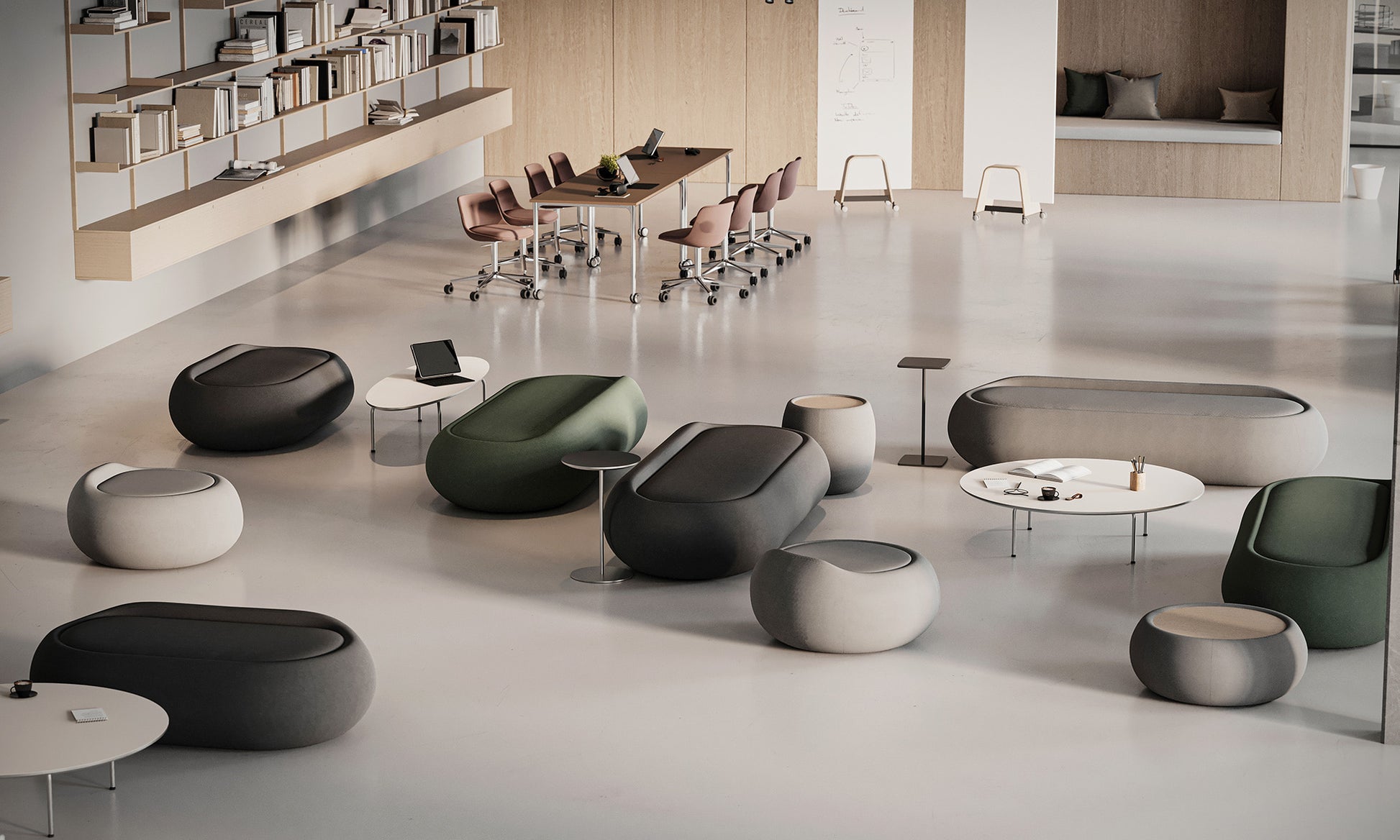多様な利用シーンに適した有機的なフォルムで設計されており、さまざまな空間に制限なく柔軟に配置することができます。